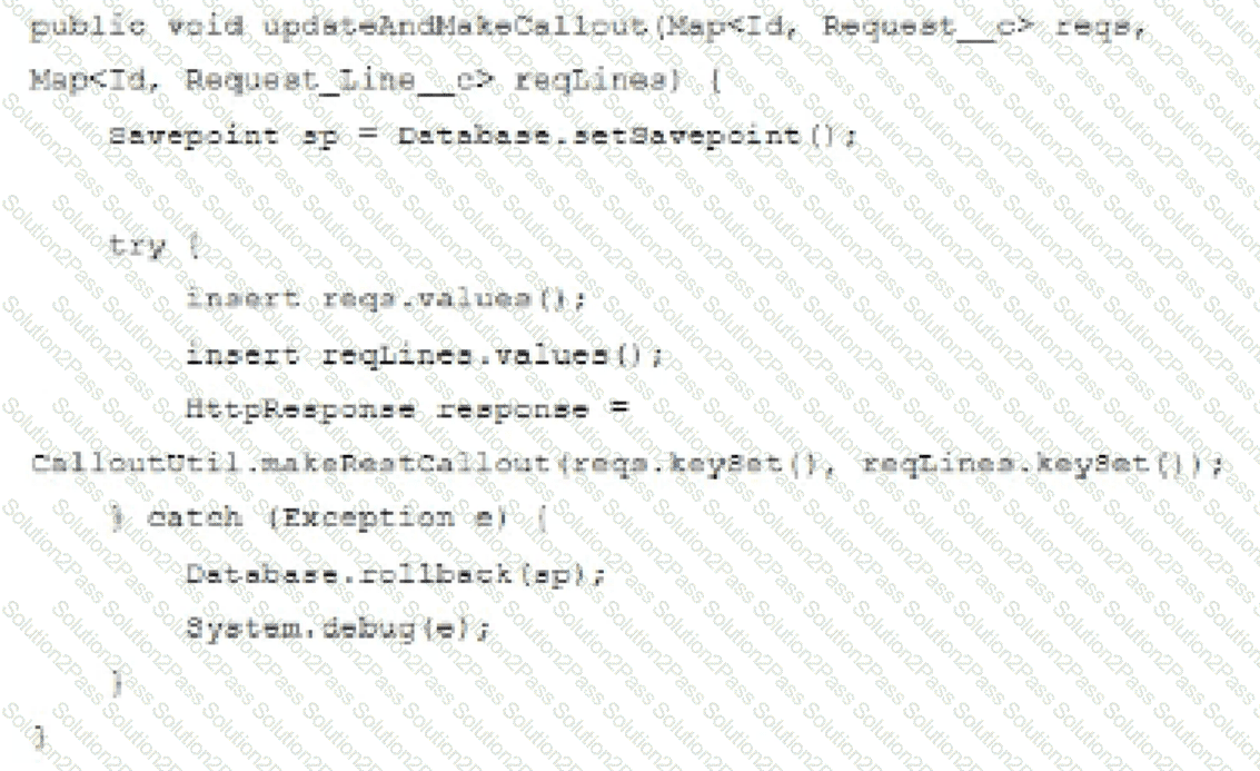 A company has code to update a Request and Request Lines and make a callout to