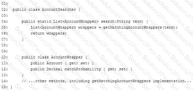A developer created a Lightning web component mat allows users to Input a text value that is used to search for Accounts by calling an Apex method. The Apex method returns a list of account to apply and is called imperatively from a JavaScript event handler.