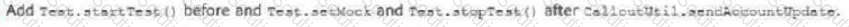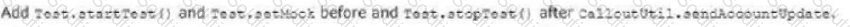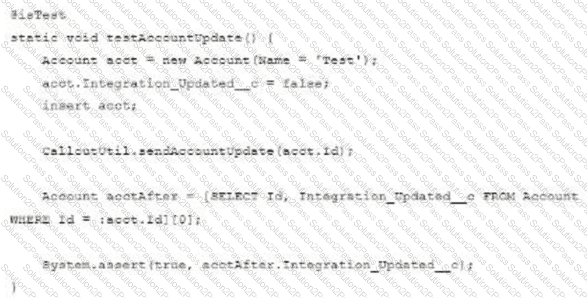 The test method calls a web service that updates an external system with Account