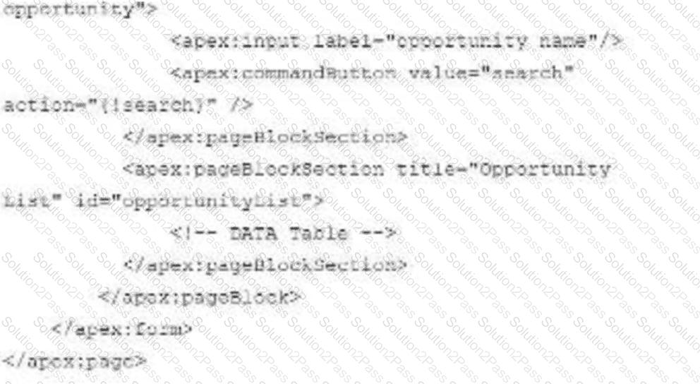 What should the developer do to ensure that a partial refresh Is made so that only the section identified with opportunity List is re-drawn on the screen?