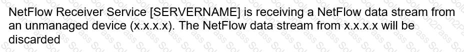 "NetFlow Receiver Service [SERVERNAME] is receiving a NetFlow data stream from an unmanaged device (x.x.x.x). The NetFlow data stream from x.x.x.x will be discarded"