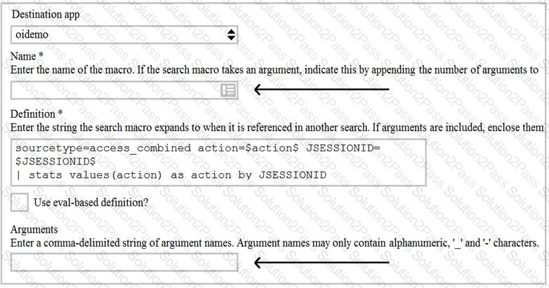 Given the macro definition below, what should be entered into the Name and Arguments fileds to correctly configured the macro?