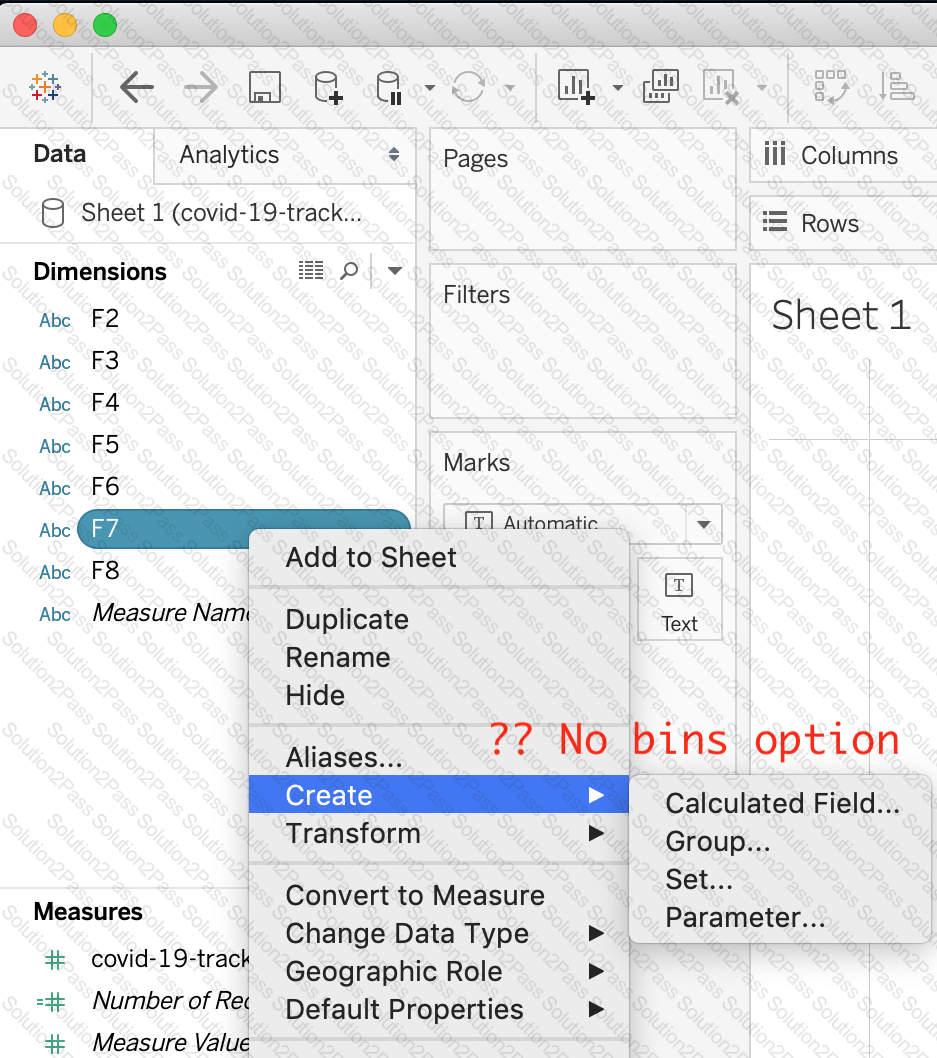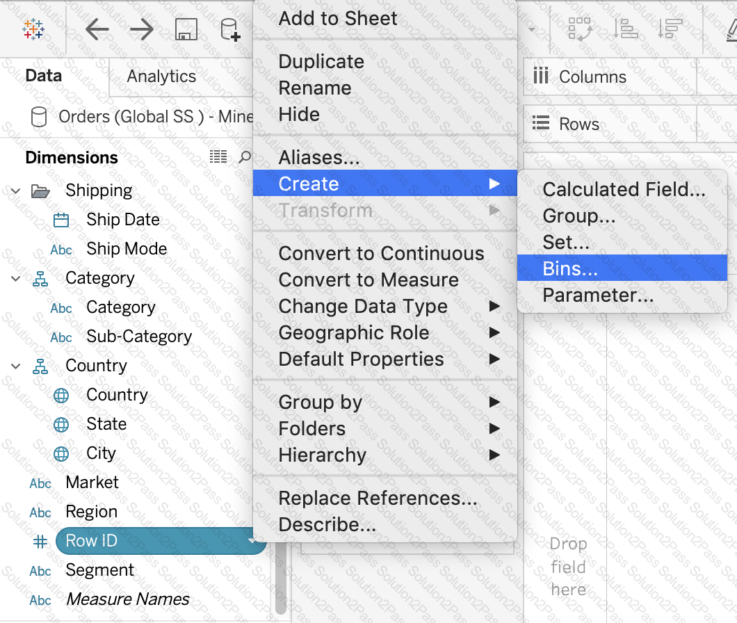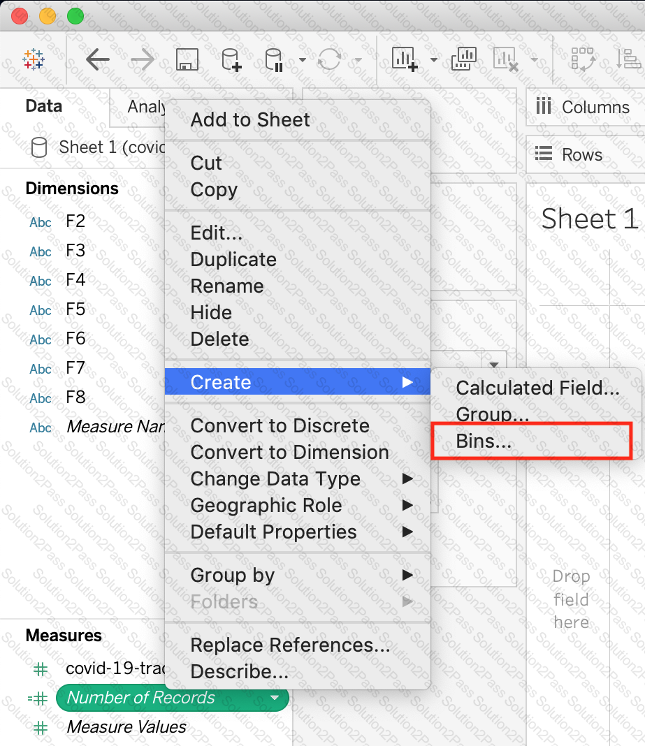 True or False : Bins can be created on dimensions