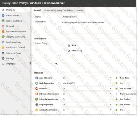 In the policy displayed in the exhibit, the state of the Web Reputation Protection Module is set to "Inherited (On)", while the state for the other Protection Module is set to "On". Why is the Web Reputation Protection Module displayed differently than the other Protection Modules.