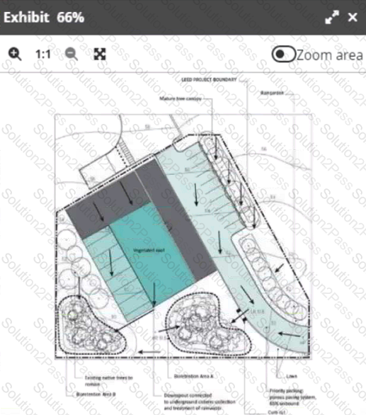 The measures called out on the following site plan may contribute to the achievement of which LEED credits?
